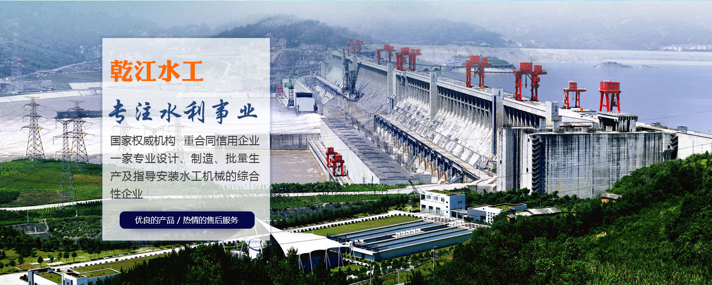 • A、乾江水工是一家專業(yè)設(shè)計、制造、批量生產(chǎn)及指導(dǎo)安裝水工機(jī)械的綜合性企業(yè)。